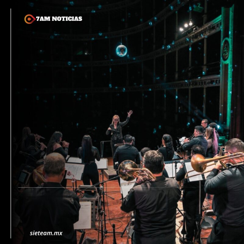 Bajo la dirección de Perla Cortés Castillo, la Banda Sinfónica del Gobierno del Estado de Colima interpretó temas como Love is in the air, Stayin Alive y popurrís con los grandes hits de Abba y Queen.