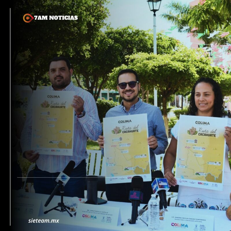 A través de un comunciado de prensa, Jorge Padilla Castillo, titular de la Subsecretaría de Turismo (Subsectur) del Gobierno del Estado de Colima, y el presidente municipal de Ixtlahuacán, Alexis Rafael Verduzco Mendoza, junto con la directora de Turismo del Ayuntamiento, Leisa Virgen, y la productora local Sandra Cecilia Chávez Contreras, presentaron este viernes en conferencia de prensa la ‘Ruta del Cacahuate’ en el jardín principal de Ixtlahuacán, donde se dio a conocer este nuevo producto turístico que busca resaltar la riqueza cultural, gastronómica y paisajística de la región.